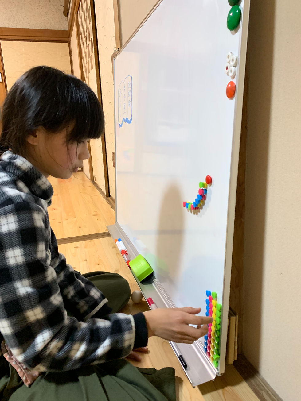その後、ホワイトボードに磁石をつけて卓球のボールを転がすピタゴラスイッチを作りました😄盛りだくさんの寺子屋でした。
