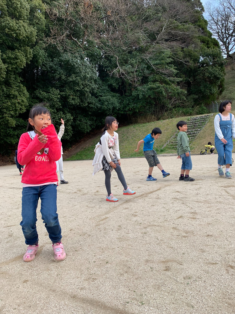 今日は天気がよかったので、宿題が終わると近所の公園にみんなで行きました‼️すると、公園には、寺子屋に来てるMちゃん、Sくん、妹のKちゃん、近所のお友達が来てました。