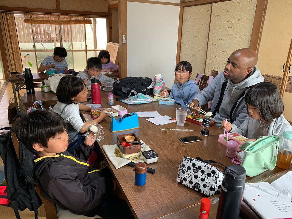 お母さんの作ってくれたお弁当🍙を美味しそうに食べます。お弁当を食べ終わったらお楽しみの遊びタイム‼️昼から天候が回復したので、いつもの公園で遊びました。そして、寺子屋に帰って、卓球🏓、LEGO、UNOなどをして遊びました‼️今日も、勉強、遊びととっても充実した令和の初日になりました😄